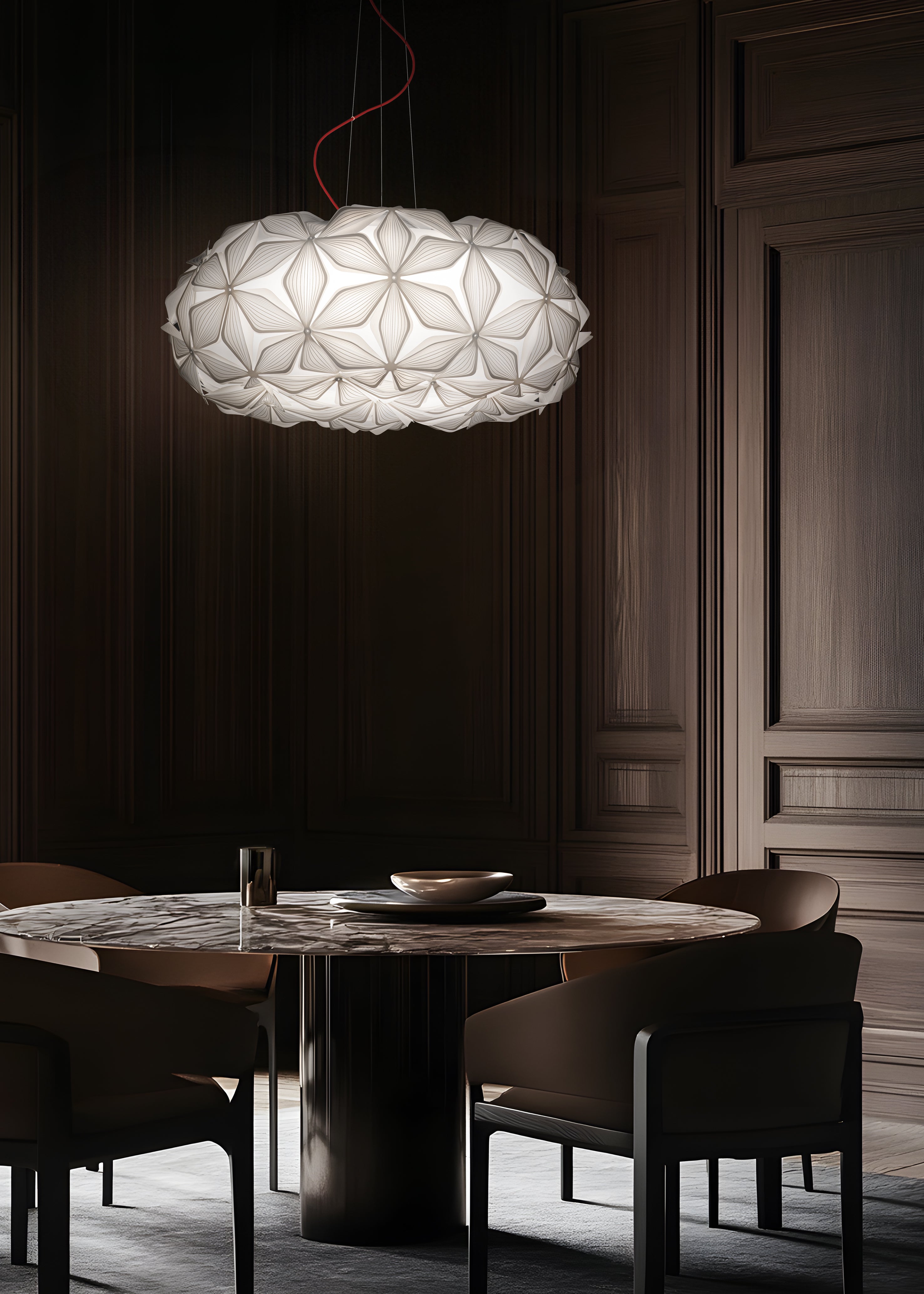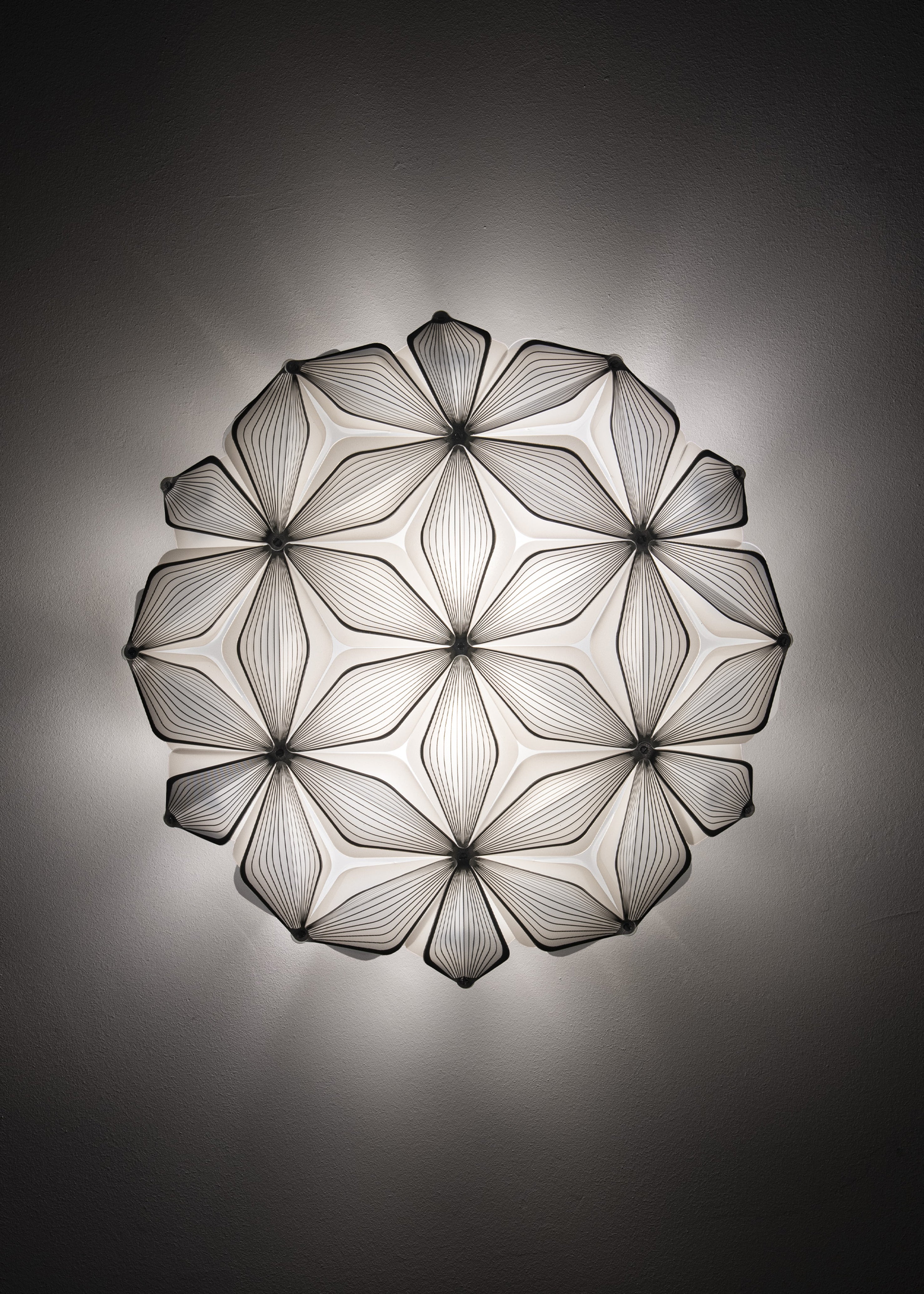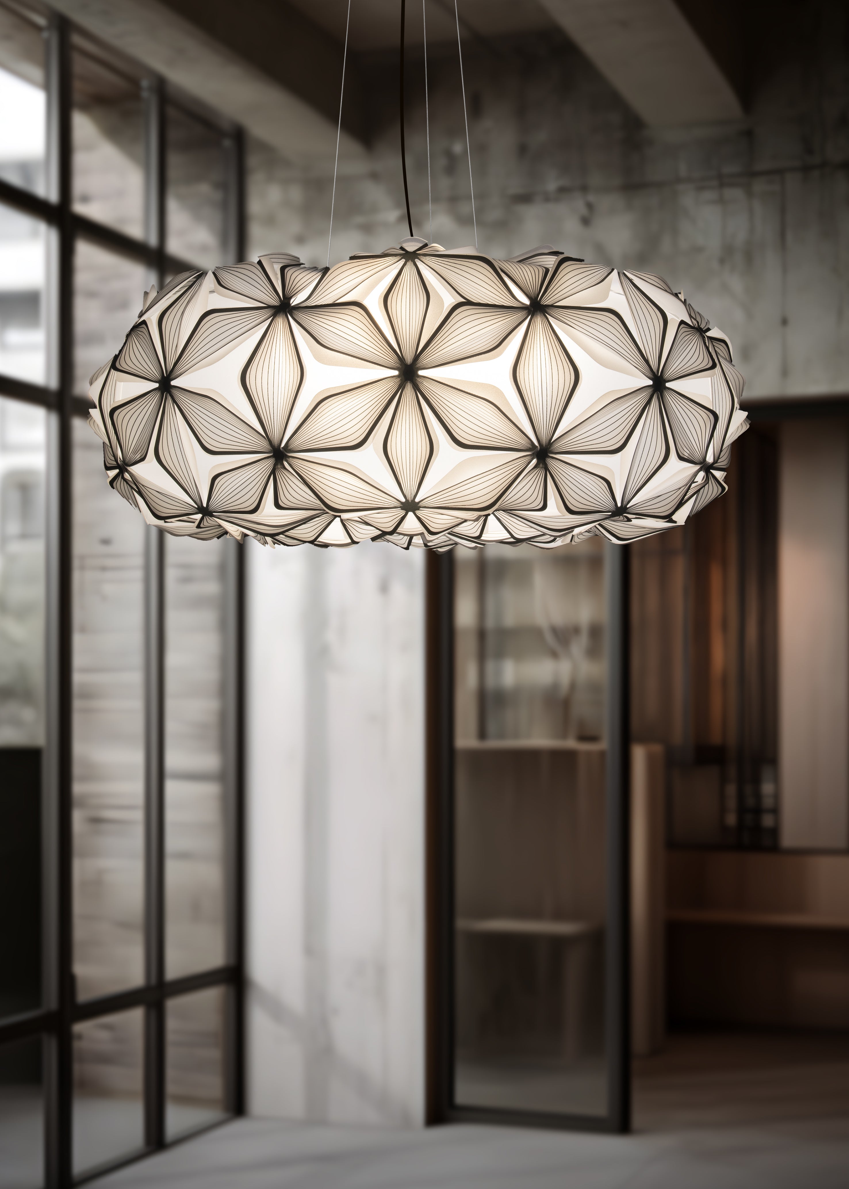 C’est La Vie è disponibile a sospensione in 2 dimensioni e a plafoniera in 3 formati per adattarsi ad ogni spazio. Il bianco e il nero valorizzano le geometrie e risultano più facilmente integrabili negli interni attuali, permettendo al prodotto di vivere in case e progetti internazionali senza perdere d'identità.