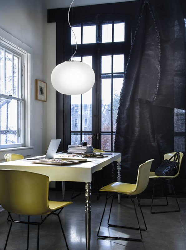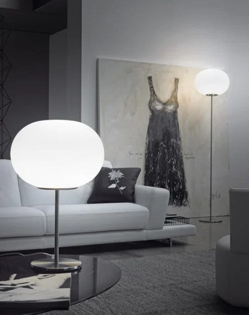 Una delle più versatili collezioni. La sua forma ovale in vetro soffiato satinato è disponibile in diverse dimensioni e tipologie.