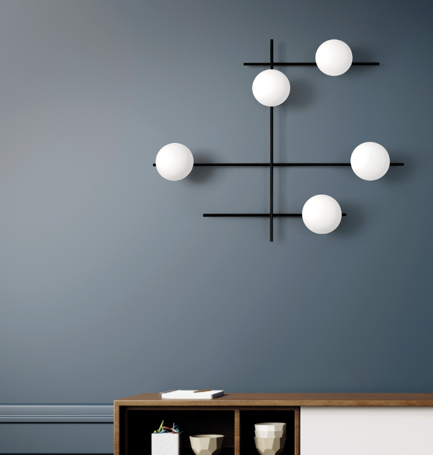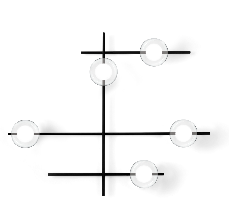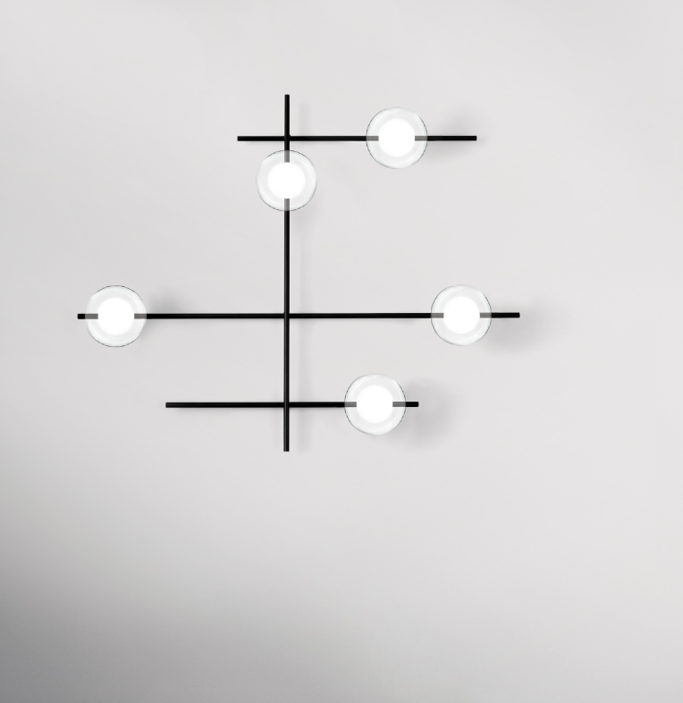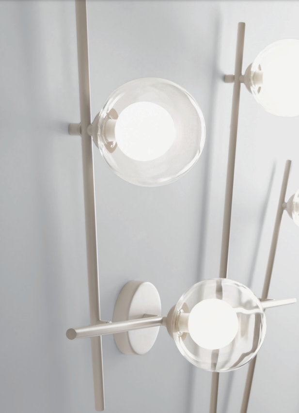 L’equilibrio tra la struttura in metallo verniciato e i diffusori è completamente sganciato da ogni vincolo formale.